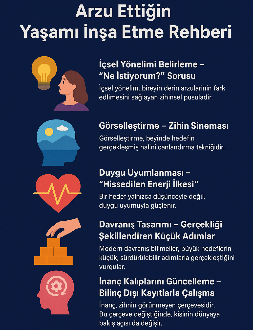 Günümüzde insanların en derin sorularından biri, “Arzu ettiğim hayatı nasıl oluşturabilirim?” düşüncesidir. Bu soru yalnızca gençlerin ya da belirli meslek gruplarının değil; her yaştan, her gelir düzeyinden bireyin içsel bir arayışıdır. Bu makale, hem bilimsel dayanaklarla hem de mistik ve metaforik yaklaşımlarla zenginleştirilmiş bir rehber niteliği taşır. Yazım akışı NLP (Neuro Linguistic Programming – Sinir Dilbilimi Programlama) ve hipnotik bilinç dışı etki oluşturan olumlu anlatım teknikleriyle güçlendirilmiştir.