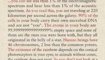 Birilerini yargılamadan ya da kesin doğruyu savunmaya başlamadan önce; Elektromanyetik yelpazenin yüzde birinden daha azını görebildiğinin ve varolan seslerin yüzde birinden daha azını duyabildiğinin, bu sözcükleri okuyup anlamlandırmaya devam ederken gökadanın […]