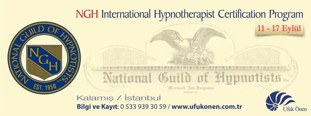 Bu program NGH (www.ngh.net) yani Amerika’da yerleşik 1950 yılından bu yana faaliyet gösteren en köklü ve en yaygın hipnoterapi kurumu tarafından düzenlenen, ‘Hipnoterapist’ yetkinliği sağlayan bir meslek edindirme sertifika programıdır.